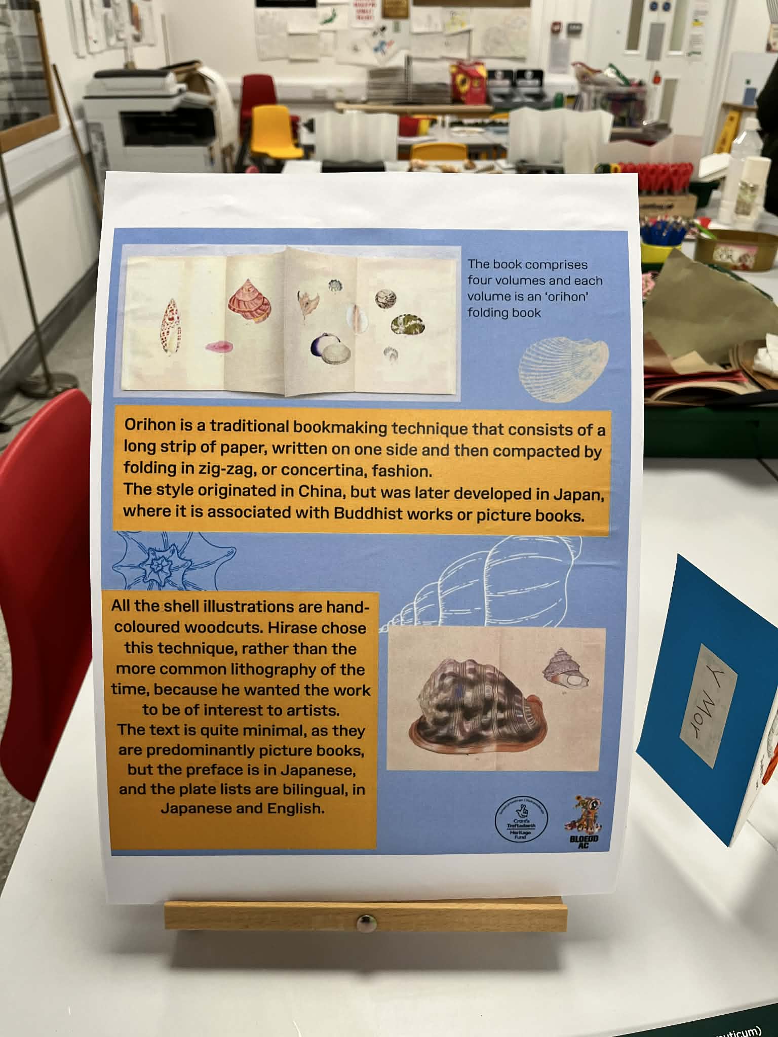 I am pleased to share with you about the forthcoming collaboration with National Museum of Wales, Cardiff. I am going to run the workshop (2 sessions on the day) to make folded booklet, called ‘ori-hon’ (折本 おりほん)in Japanese, which I was inspired by a very precious collection of the Museum, called ‘Kai-Chigusa’ (貝千種 かいちぐさ), a thousand of shells, published by a Japanese malacologist (invertebrate researcher and collector, Yoichiro Hirase.
