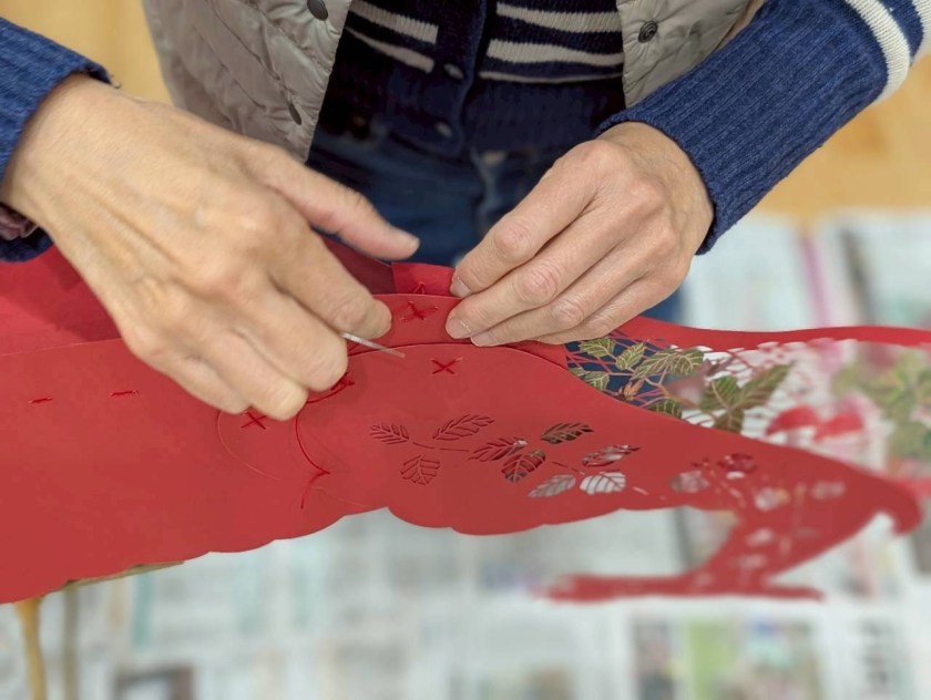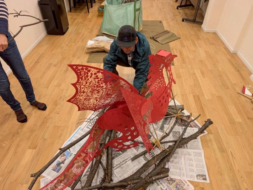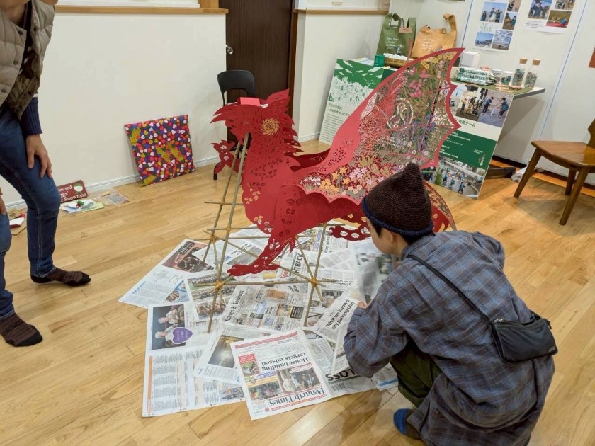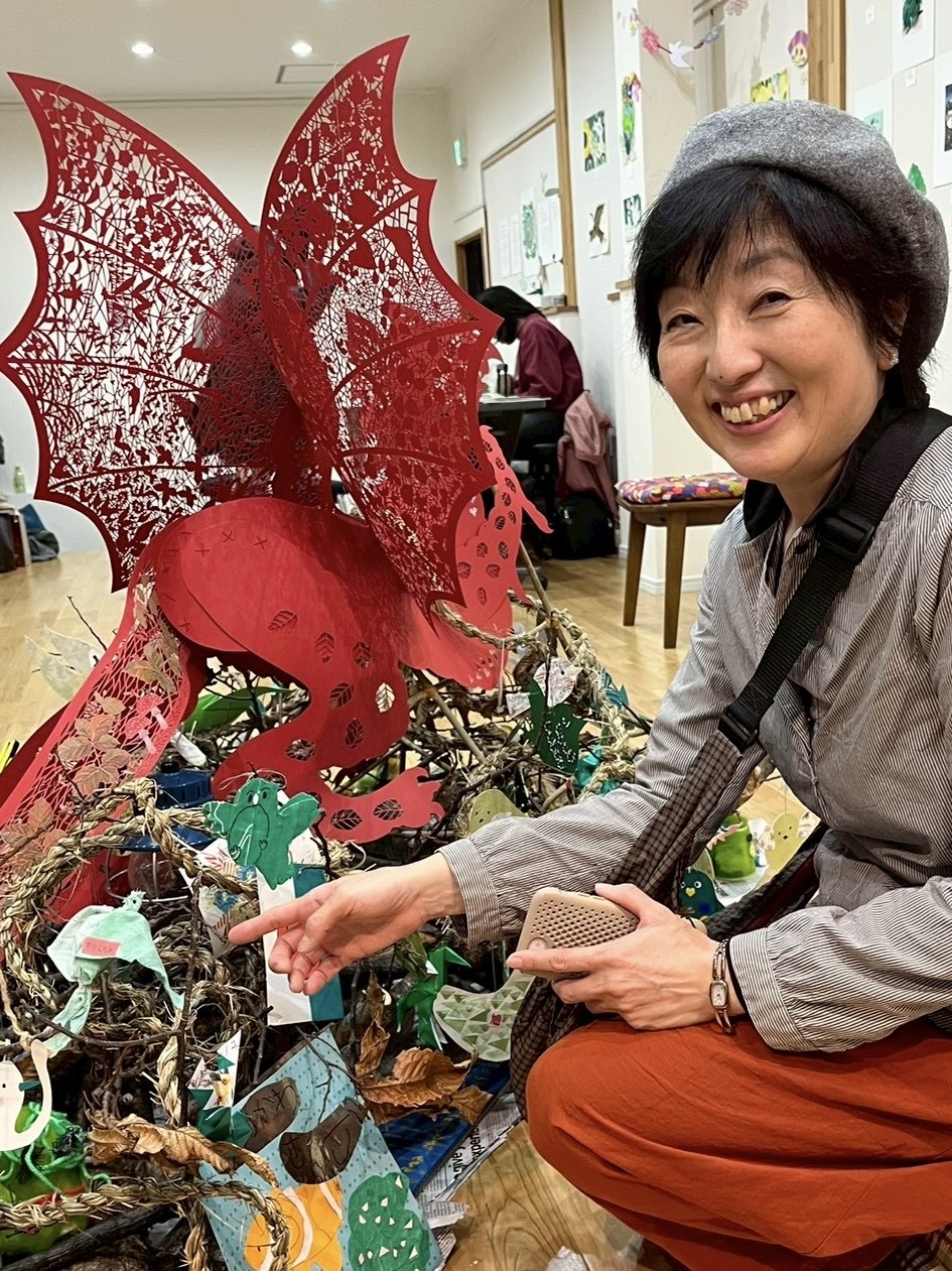 Mari Wirthヴィルト マリは、ウェールズの州旗に入っている象徴的なレッドドラゴンの切り絵作品をウェールズから日本へ持ってきました。