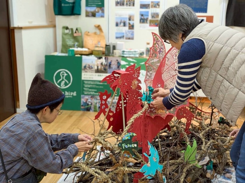 On the Japanese side, the leader of the Green Bird Himeji team took the lead and collected a variety of works, including green birds, through workshops and other activities.