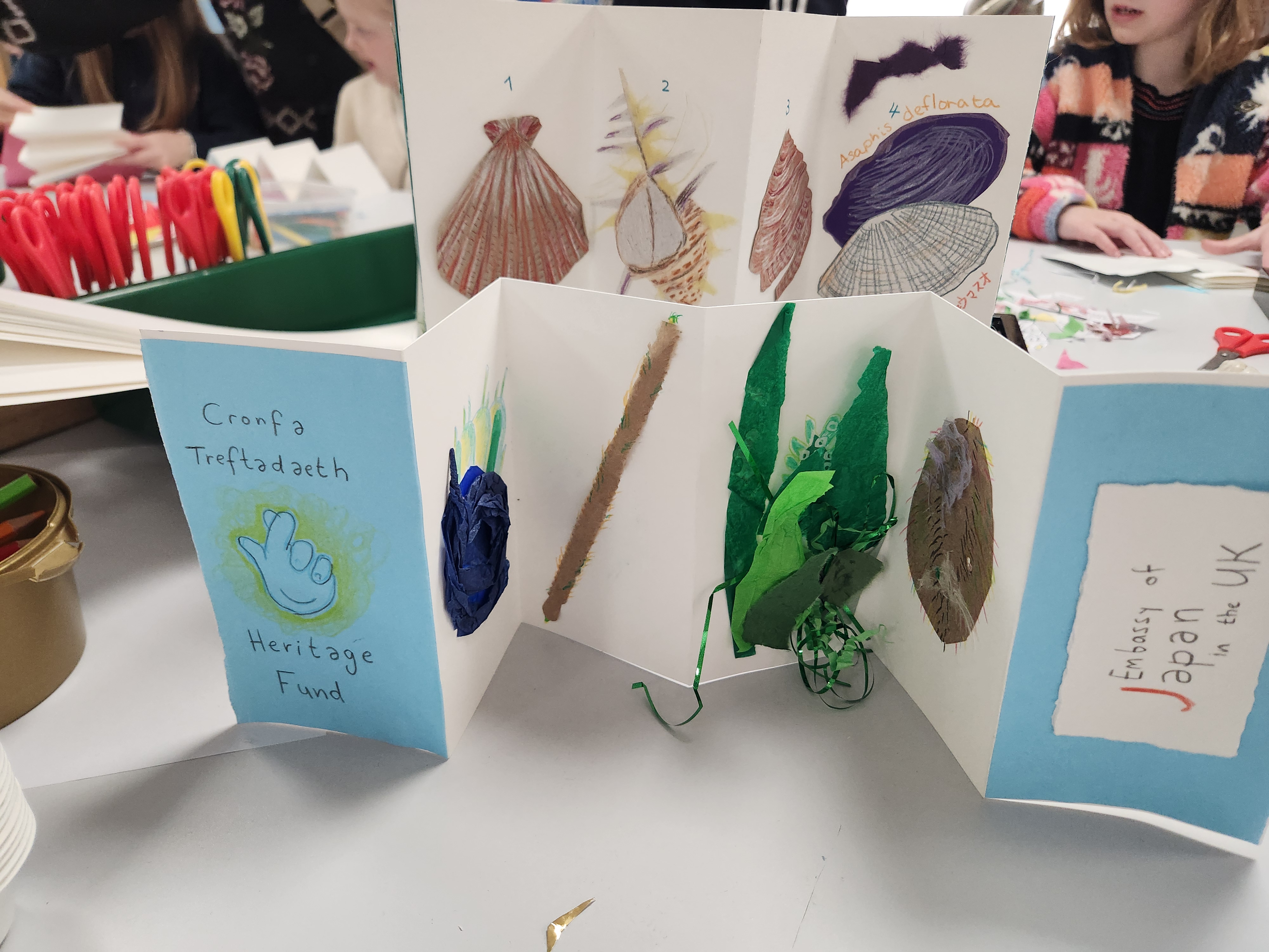 Ori-hon, folded booklet workshop for Y Môr -Japan and Wales at National Museum of Cardiff (mainly school age but all age)