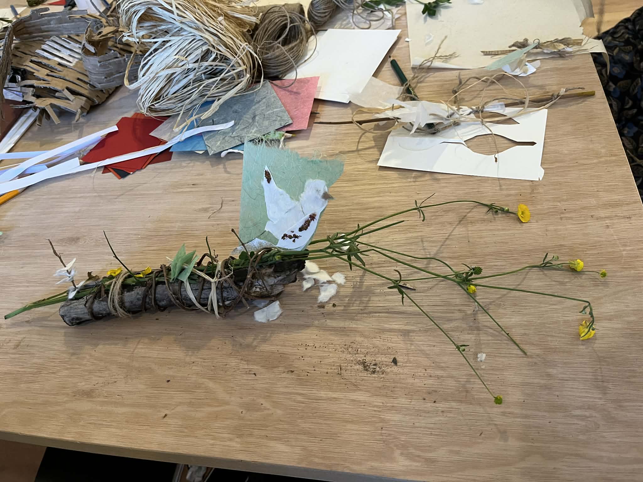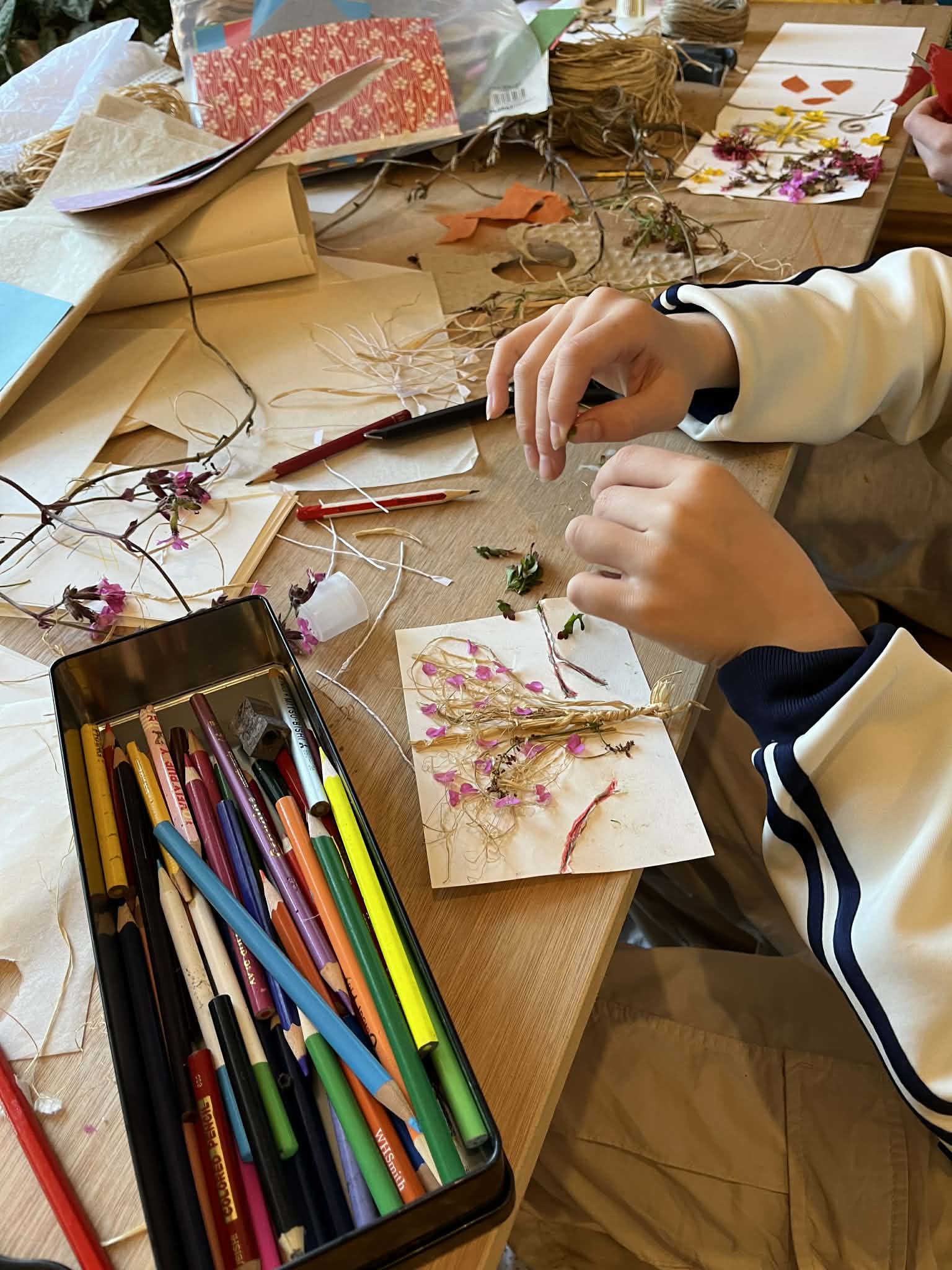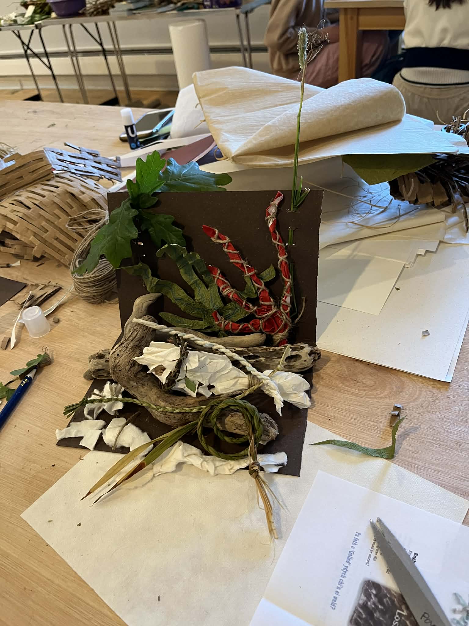 I run workshops for all ages. My workshops include paper-cutting, collages and installation art. I use natural and recycled materials as much as possible, and do not use plastic.
