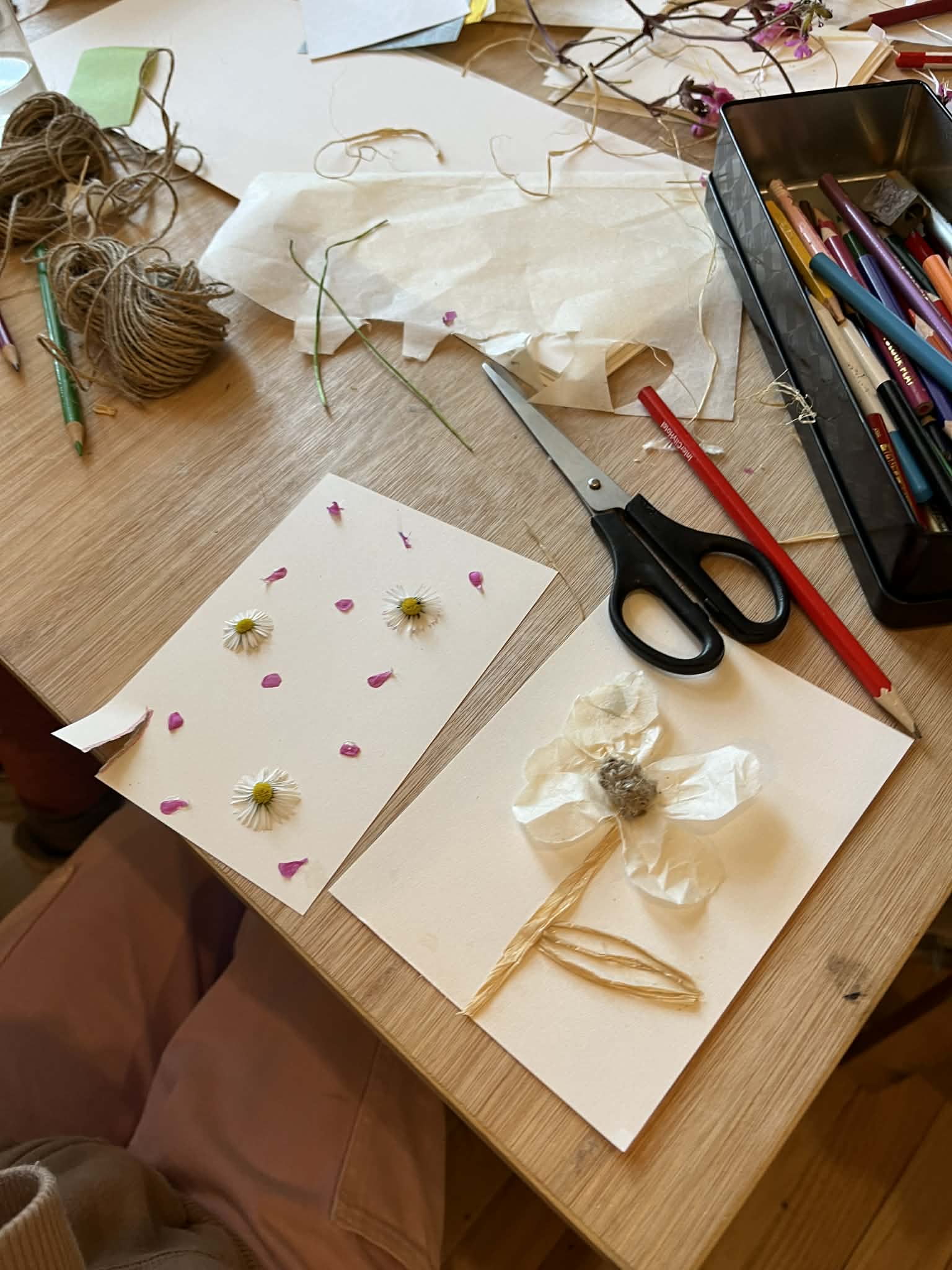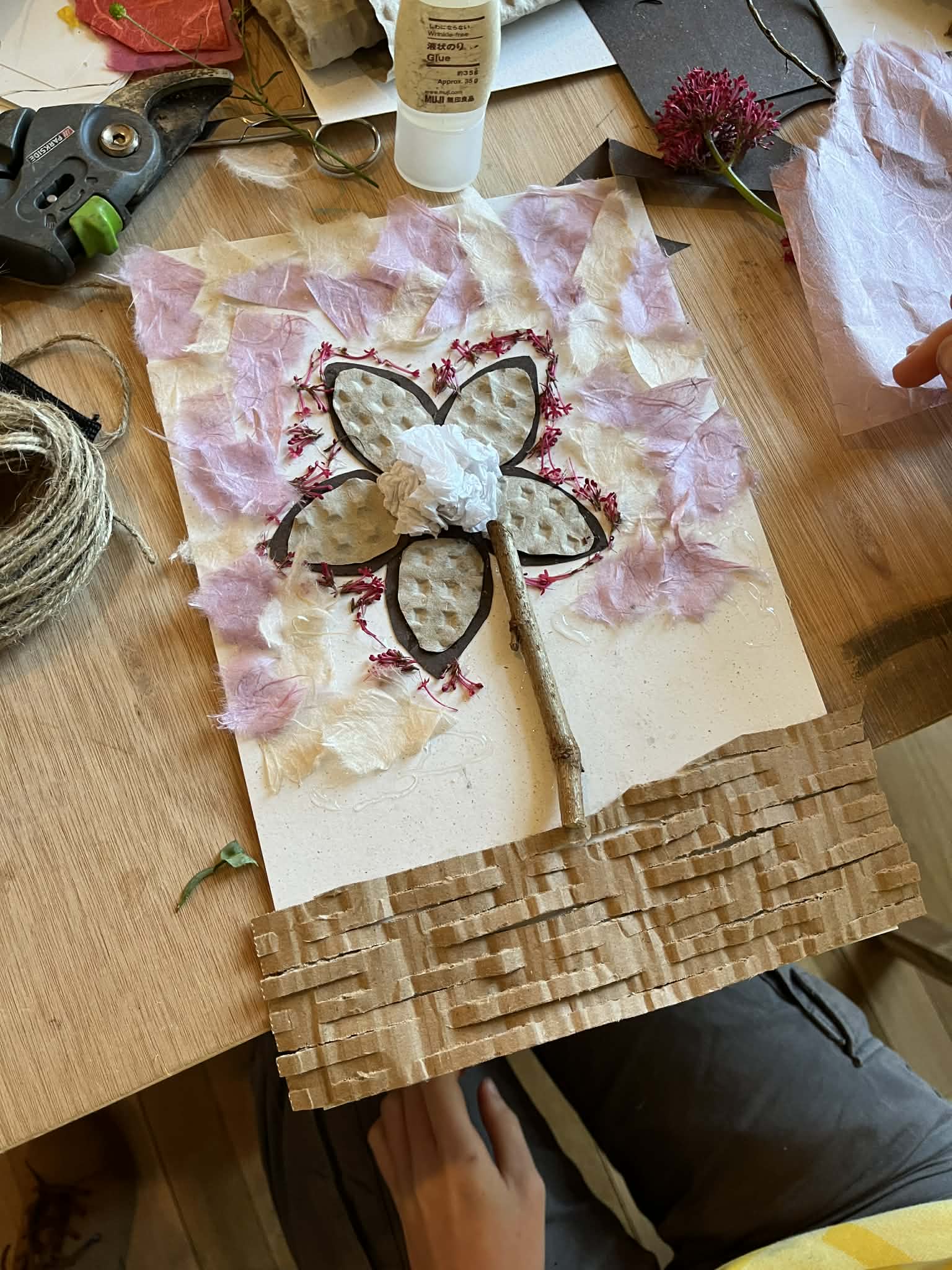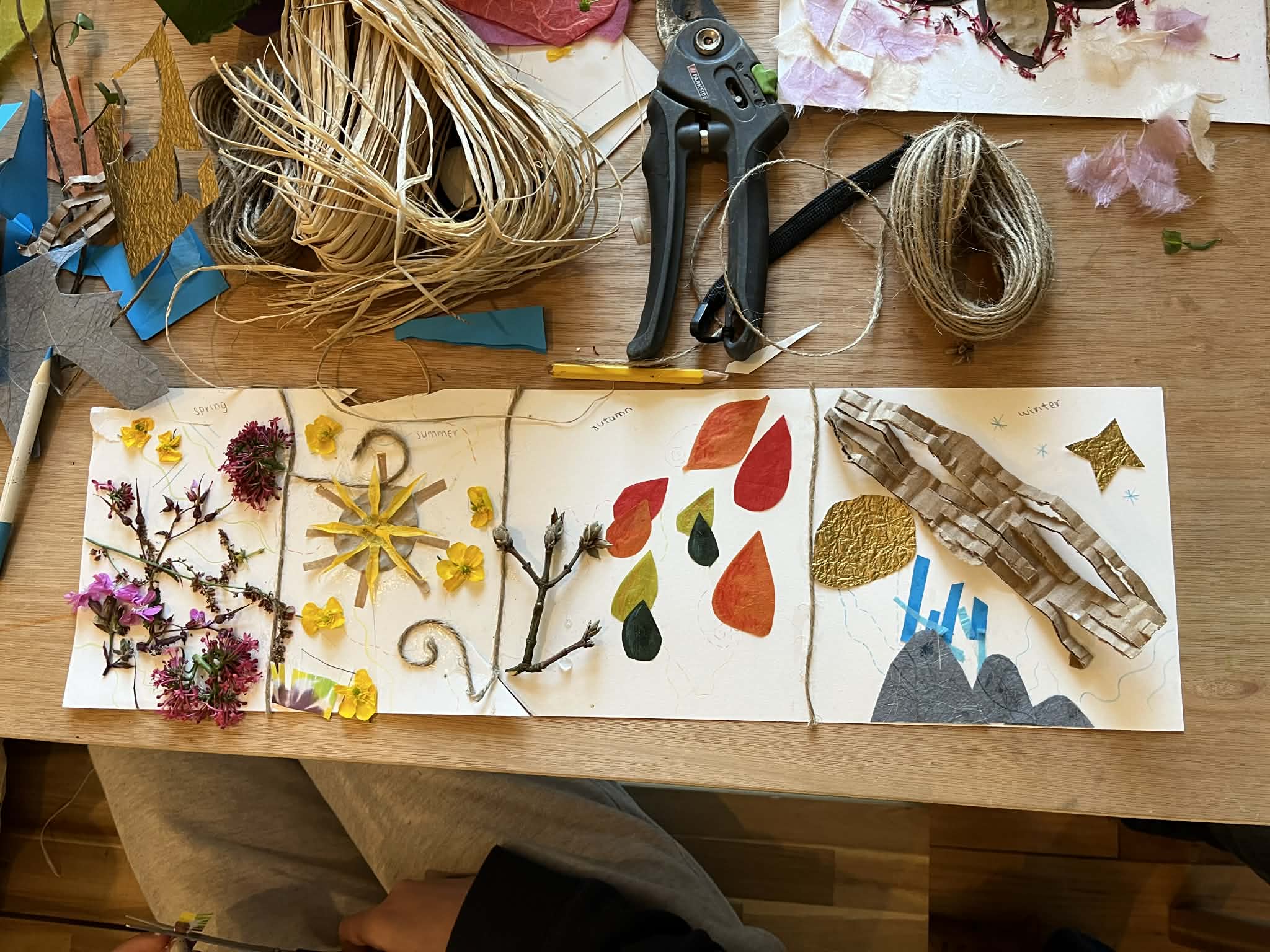 I run workshops for all ages. My workshops include paper-cutting, collages and installation art. I use natural and recycled materials as much as possible, and do not use plastic.